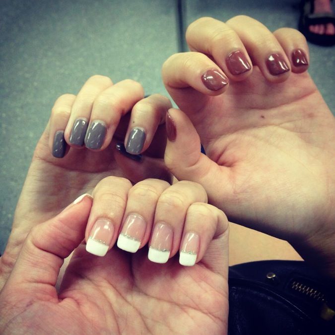 I'd brought Zhiwei to the nail parlour that Flea and I frequent! I got my Gellish red nails removed (at no charge), and got French tips, Gellish again, this time! (: It cost me 25$. Zhiwei got an express manicure at 7$, she chose a pretty nudish-brown. Flea's greyish-taupe was done by the same lady a few days ago! Our nail lady has mad skills, plus she's so nice!
