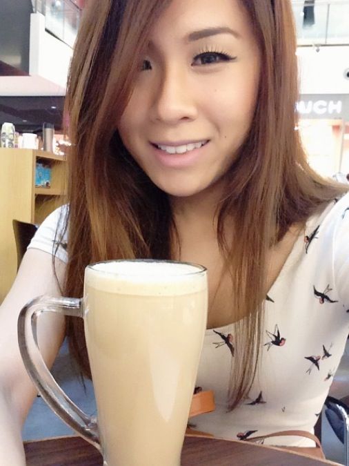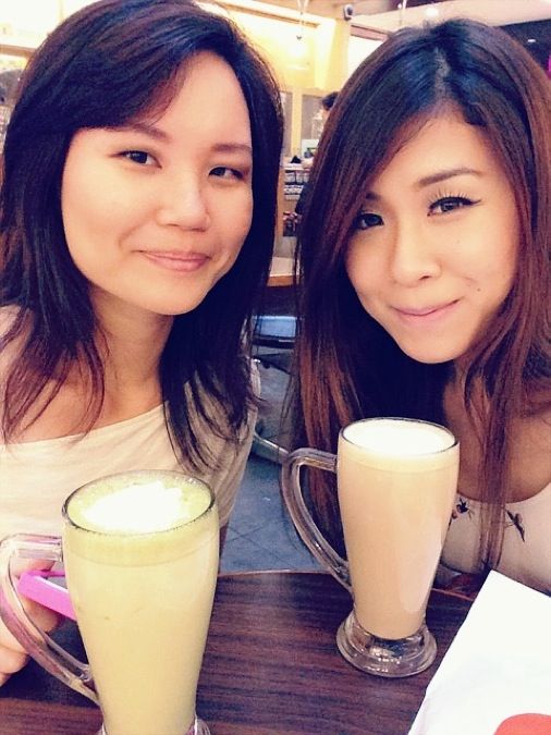 Us with her matcha latte and my vanilla latte at Coffeebean!