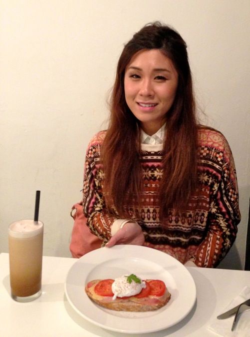 on sourdough toast. We both got half portions by the way, if you get the main portions there'll be two eggs! I also got iced coffee and I made the mistake of wanting it to be sweetened. For someone who'd started drinking black coffee since kindergarten, I really ought to stick to unsweetened coffee. But the coffee was really good!