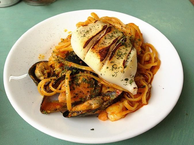 PastaJ at Kuan FoodCourt (it's more of a coffeeshop) at the end of Keong Saik Road. As the name signals, PastaJ sells mostly pastas. It's more of a fusion style, tweaked to local palates, rather than traditional Italian cuisine.