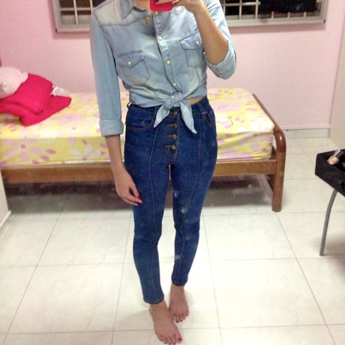 I quite dislike wearing jeans in Singapore's heat but I like this pair because of the high-waisted design! :D