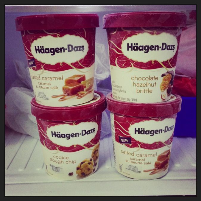 And if things aren't enough, when I complained that I hadn't even gotten a bite of the two pints of B&J my parents had bought and they had already disappeared, they went and bought 4 pints of Haagen Dazs again.