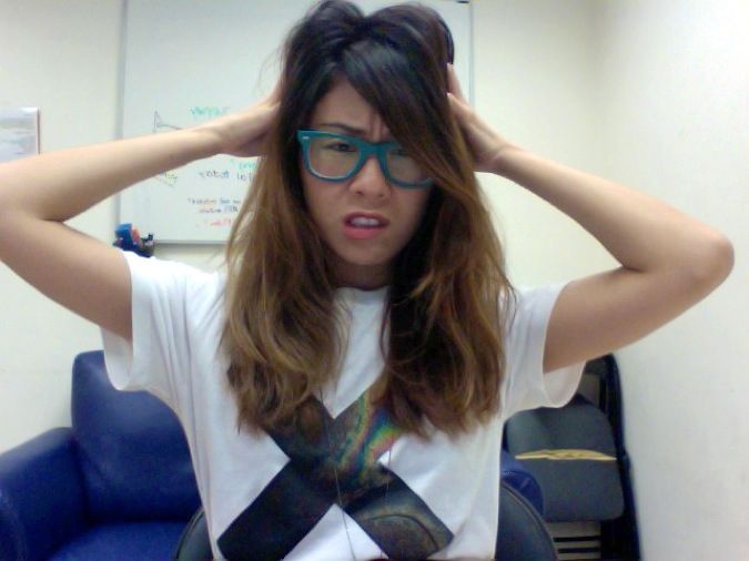 Started wearing spectacles yesterday because on Wednesday night, my eyes were hurting so badly because of my lenses.................. I thought about it and I've actually been wearing lenses daily for more than 12 hours for a couple of weeks. That's a real stress to put my eyes through! Gonna start wearing spectacles more often. I feel I look extremely different in spectacles (mostly because I'm very used to seeing my iris with coloured lens) but...... never mind luh, my friends don't seem to care hahahahahahahahaha.