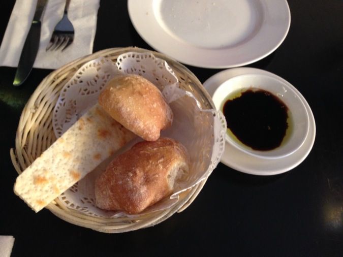 They provide free bread with a dip of balsamic vinegar and olive oil. I like balsamic vinegar a lot, because it has a real richness in taste. I'm not quite sure how (or in which dishes) to use it though, hence the almost-full bottle of mine at home!